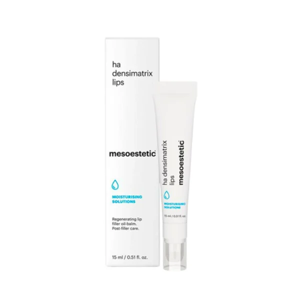 HA Densimatrix Lips de Mesoestetic es un innovador bálsamo labial en aceite diseñado para transformar tus labios. Su fórmula avanzada, enriquecida con ácido hialurónico y un complejo de activos reparadores, hidrata en profundidad, rellena y rejuvenece los labios al instante.